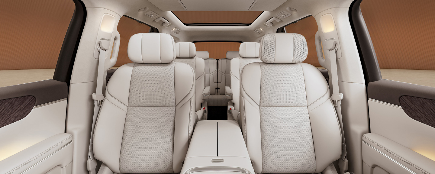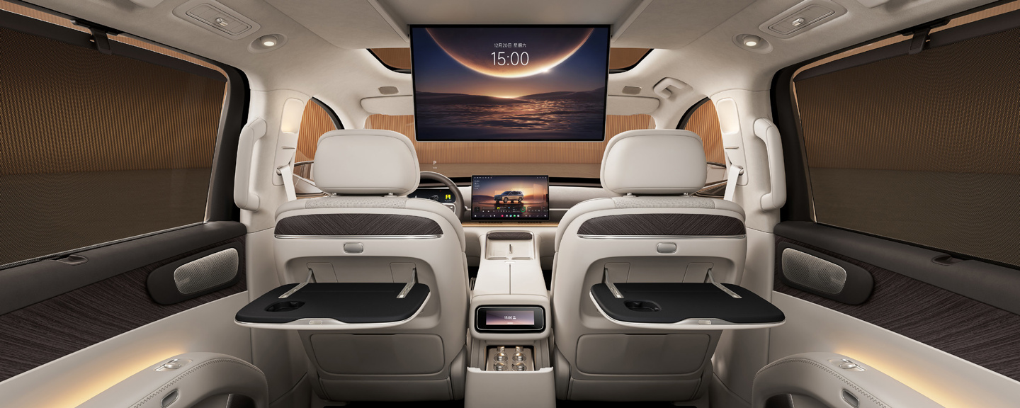 从谍照来看,D99中控采用大尺寸悬浮式触控屏与数字仪表组合,屏幕边框收窄且位置居中,便于驾驶者与副驾获取信息,延续D19简洁直观的交互逻辑。中控台线条平直延展,搭配深浅层次分明的饰板与局部哑光金属质感饰条,弱化传统MPV的商务厚重感,更贴近家庭用户的审美偏好。换挡区域布局紧凑,保留常用功能的实体按键与旋钮,兼顾盲操便利与视觉清爽。车内大量使用软质包覆材料,配合缝线点缀与氛围灯带,烘托温馨且精致的座舱氛围。