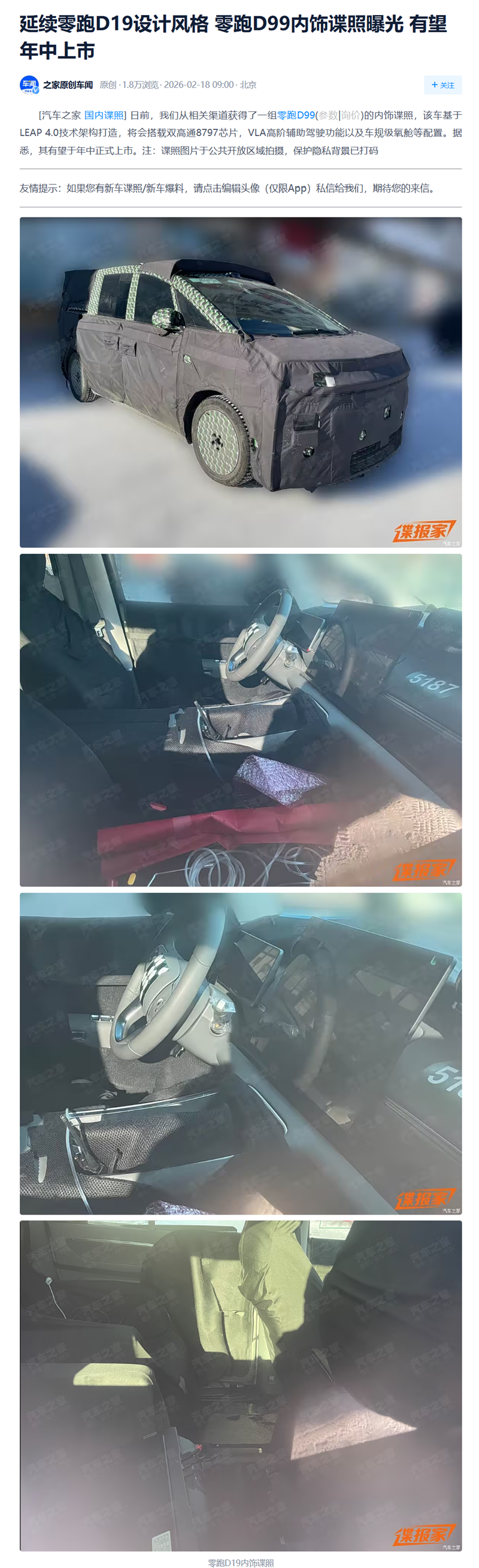 零跑D99内饰谍照曝光所展现的D19设计风格延续,显示出品牌在拓展车型矩阵时注重家族化识别与用户体验的统一性。随着后续伪装逐步褪去与动力、配置信息的披露,D99的市场定位与差异化竞争力将进一步明朗,为关注零跑MPV产品的用户带来更多期待。