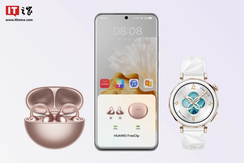 华为 FreeClip 是业界首款左右耳自动识别的开放式耳机,采用“C 形桥”设计,应用镍钛记忆合金,佩戴稳固舒适,单耳重 5.6g;C 桥部分则配备自适应传感器,可调节卡扣的夹力,其薄悬臂梁中含有 9 根核心线。