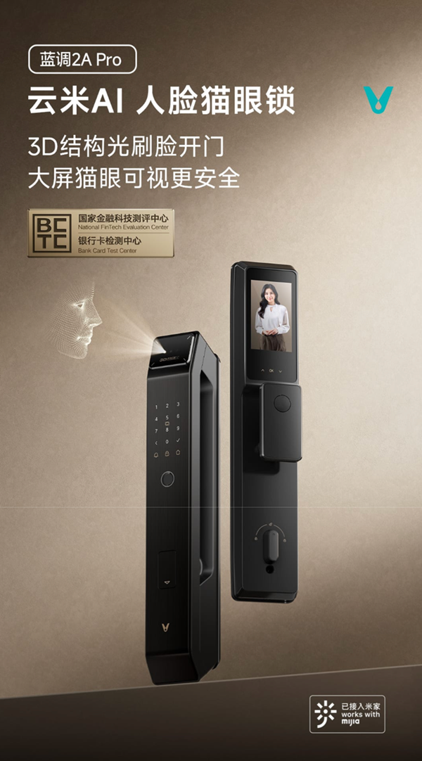 2 月 9 日消息,VIOMI 云米旗下智能门锁 2A Pro 人脸猫眼版现已在京东开启首销,标准定价 999 元,首发价 869 元。