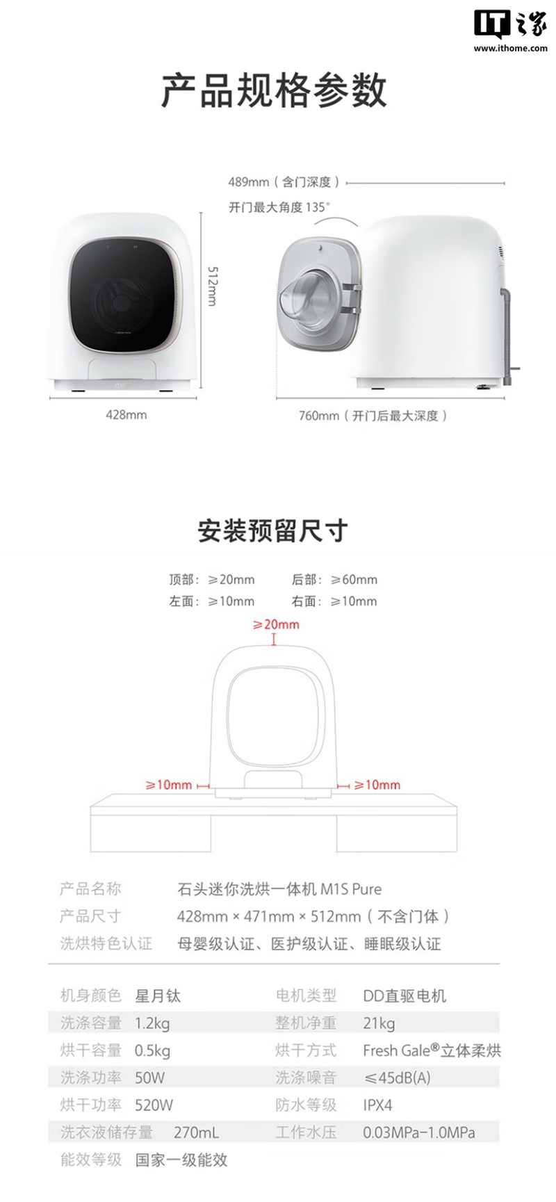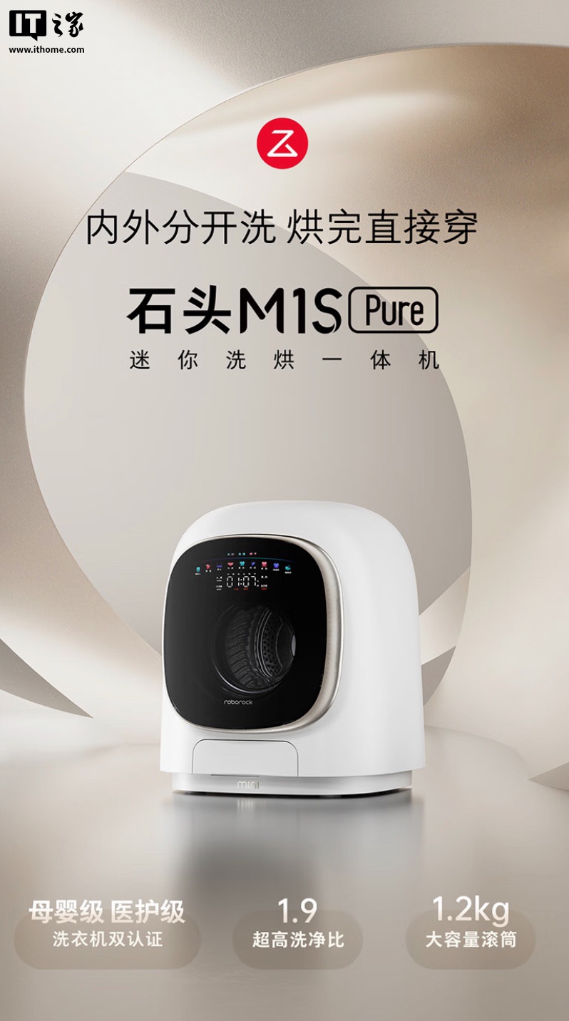 5 月 3 日消息,石头科技现已在京东上架 M1S Pure 迷你洗烘一体机,该机主打“1.9 洗净比、1.2 KG 滚筒、母婴级医护级洗衣机认证”,定价为 1999 元,国补后 1599.2 元。