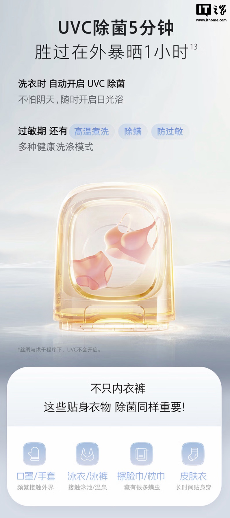 其他方面,该洗烘一体机获得了母婴级医护级洗衣机权威双认证,支持 UVC 除菌、立体柔烘等技术,支持自动加洗衣液。