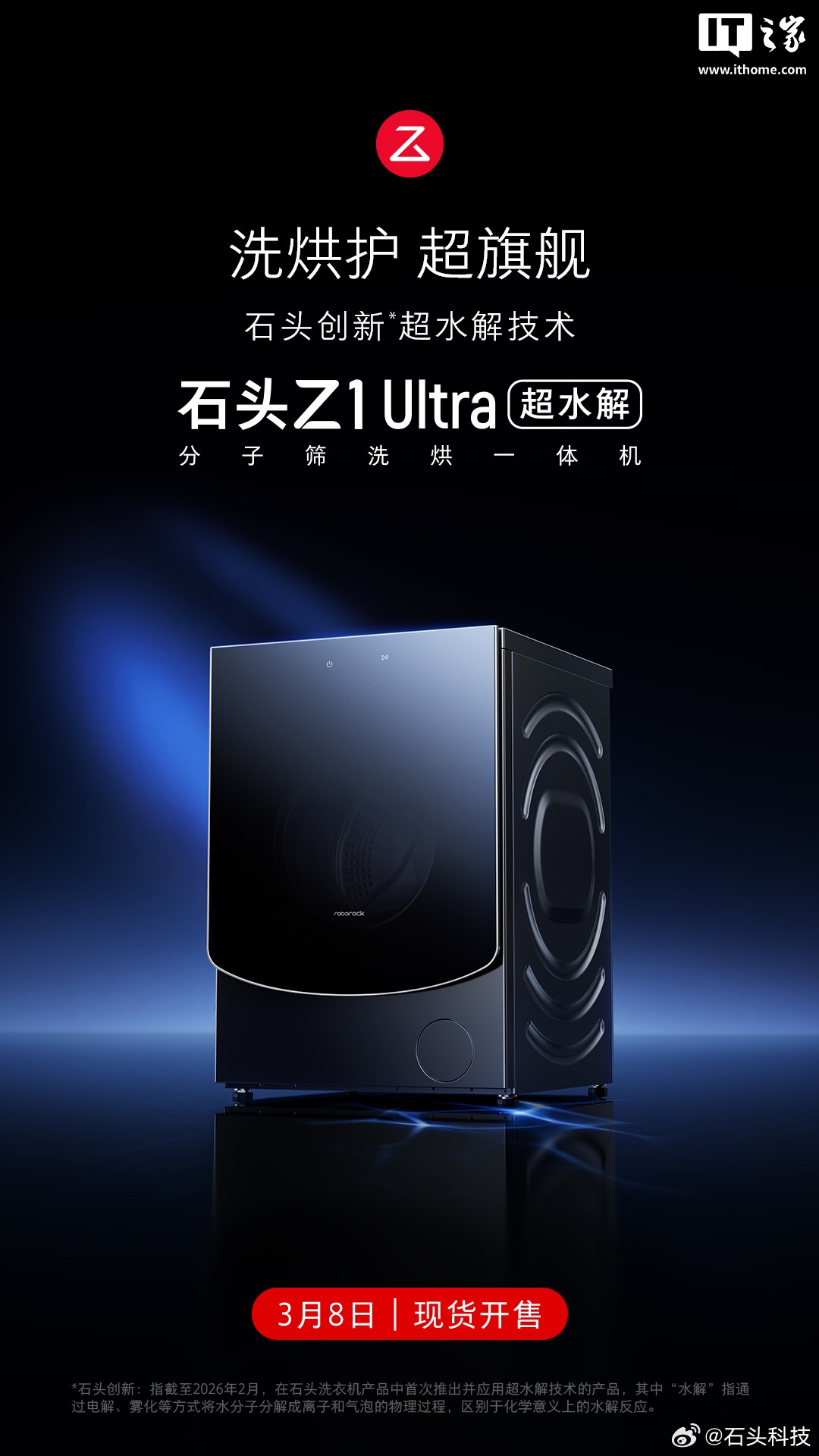 石头发布 Z1 Ultra、M1S Ultra 超水解洗烘一体机,国补后2544.15元起,加码高端清洁家电赛道,为家庭洗护场景带来兼具高效去污与柔烘呵护的新选择。作为石头在清洁电器领域的技术进阶之作,两款新品基于品牌在水解洗与热泵烘干上的研发积累,面向注重洗涤洁净度与烘干护衣效果的用户推出,在洗衣机与干衣机市场引发关注,被视为石头拓展全屋清洁生态、提升高端产品覆盖率的标志性动作。据官方消息,新品定价结合国补政策落地,首批货源已同步上线品牌官方商城与主流电商平台。