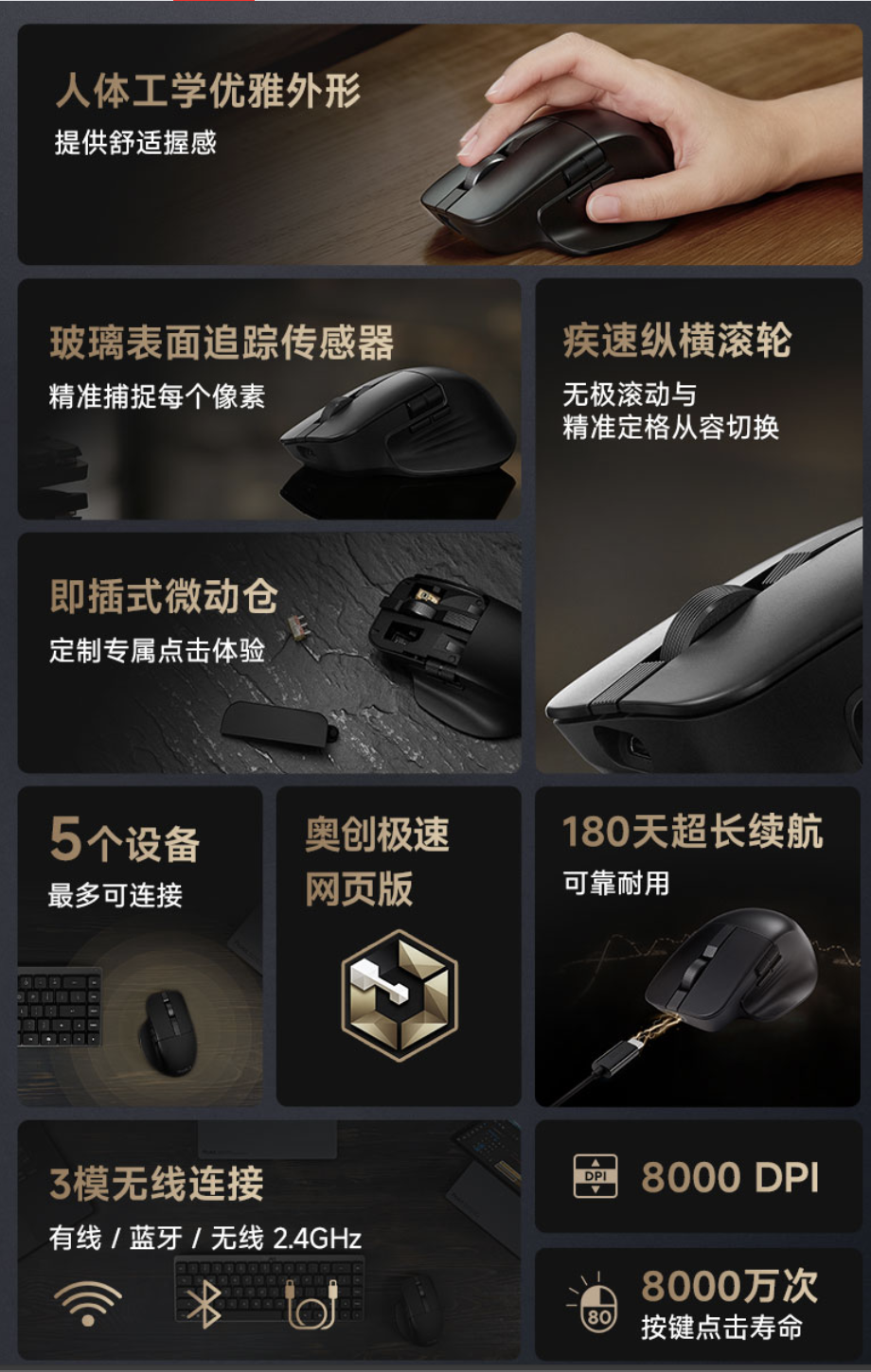 消息称,MD301 的即插式微动仓设计允许用户自行更换微动开关,无需焊接工具,可快速应对不同点击手感需求或延长按键寿命。鼠标搭载低功耗光学传感器,配合节能模式与内置电池,可实现约 180 天续航,减少频繁充电对工作连续性的干扰。现场观察显示,机身线条贴合手掌,外壳采用磨砂材质提升握持稳定性,侧键布局兼顾常用办公软件快捷操作。媒体报道指出,该续航表现与可维护设计在需要长时间稳定运行的办公场景中受到较多关注,促使部分企业在批量采购时将其纳入高耐用外设考量范围。