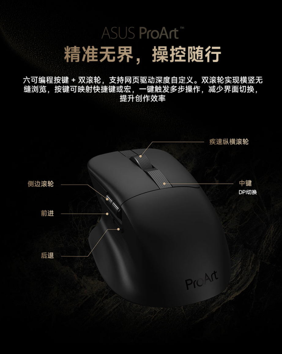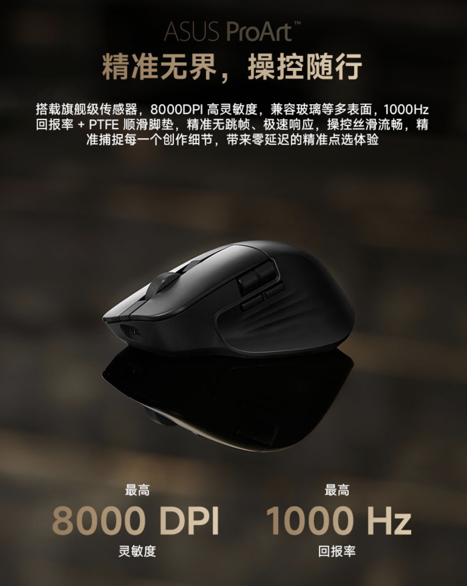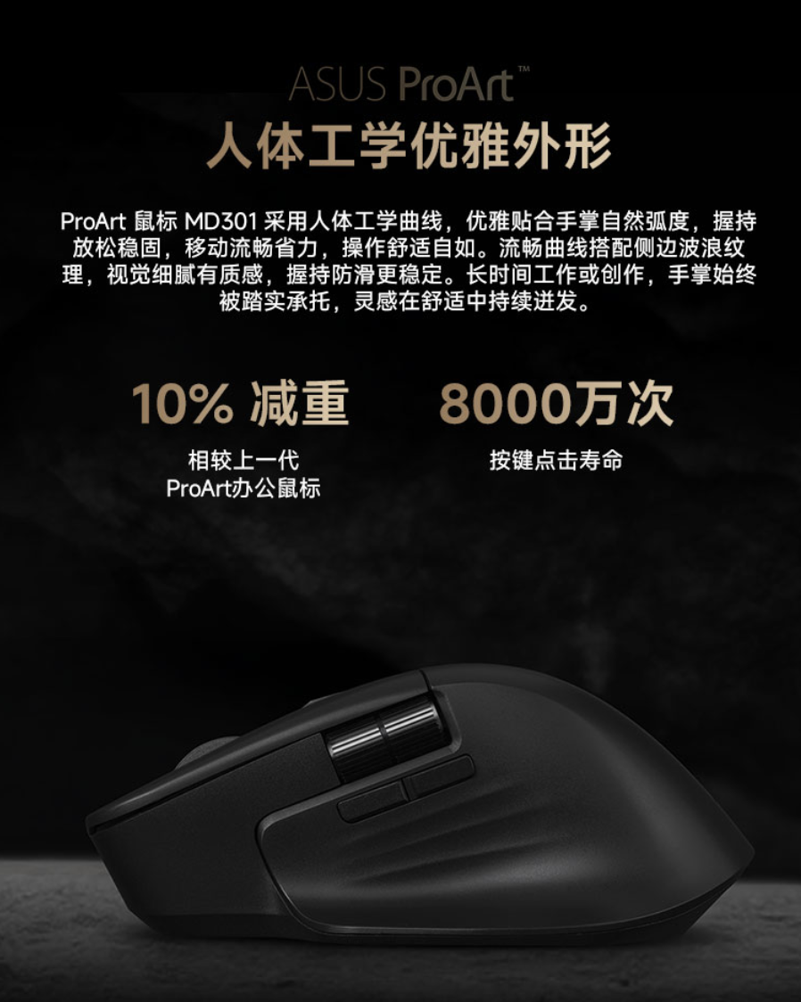 据官方消息,华硕近日推出 ProARt MD301 办公鼠标,并于国内市场正式发售,售价 599 元。该产品面向设计师、文字工作者等对操控精度与耐久度有较高要求的办公人群,采用即插式微动仓结构与长效续航方案,在同类专业办公鼠标中形成可替换部件与低维护成本的差异化特点,进入更多行业用户与办公设备采购者视野,被视为提升长期使用稳定性的参考样本。