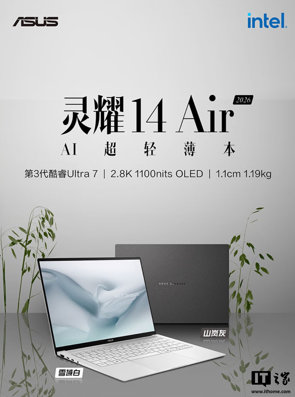 华硕 灵耀14Air 2026以酷睿Ultra7 356H 32G 1T配置与8999元售价,结合轻薄机身 高素质屏幕 完善接口与散热方案,在轻薄本市场中形成性能与便携的平衡优势。该机型面向追求创作效率与移动体验的用户,既能应对高强度办公与内容生产,又便于随身携带,为2026年轻薄本新品阵列增添兼具实力与设计感的选择。