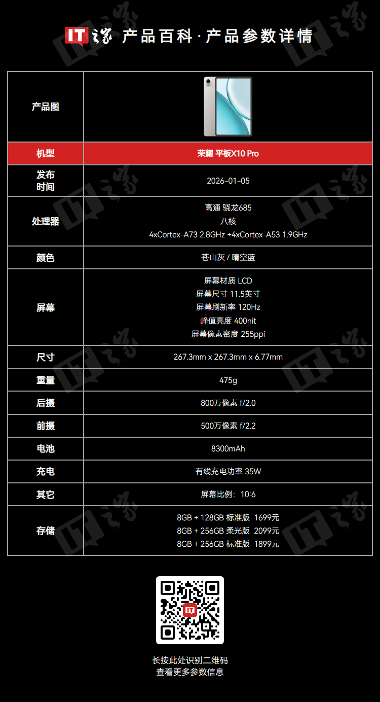 荣耀 X10 平板近日上架,配备11英寸护眼全面屏与10100mAh电池,主打长时间观看与续航使用场景。作为荣耀在平板入门与主流价位段的补充型号,X10 面向学生、家庭娱乐及移动办公用户,延续品牌对护眼显示与持久续航的重视,在千元级平板市场形成新的选择。据官方消息,此次上架基于已完成的生产备货与渠道铺陈,将主要规格同步公开,在线上商城与线下门店引起讨论,被视为荣耀完善多价位平板布局的务实举措。